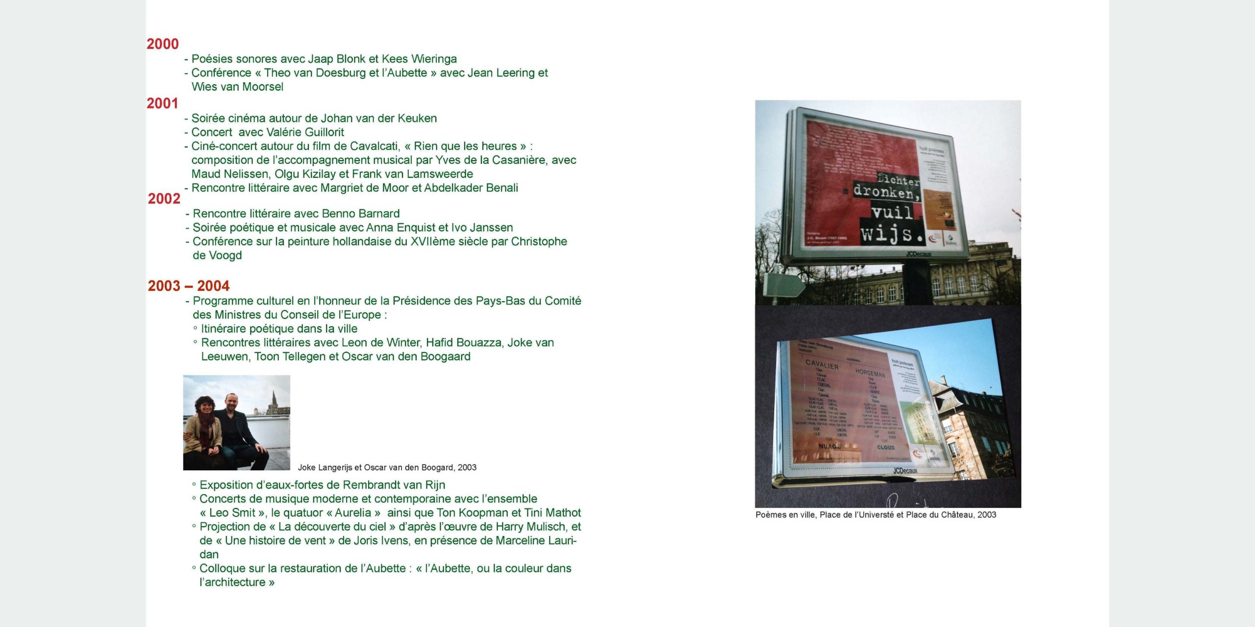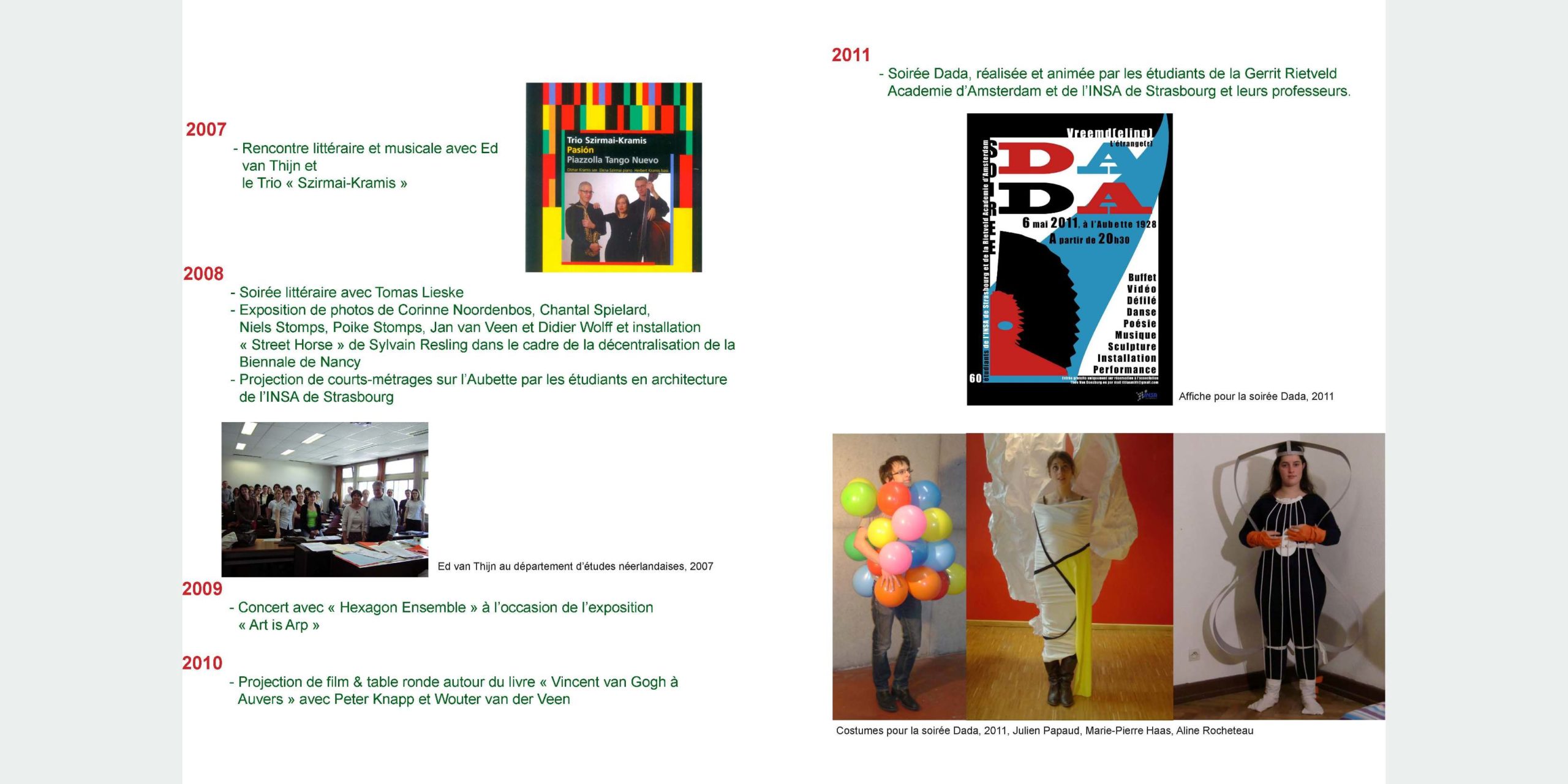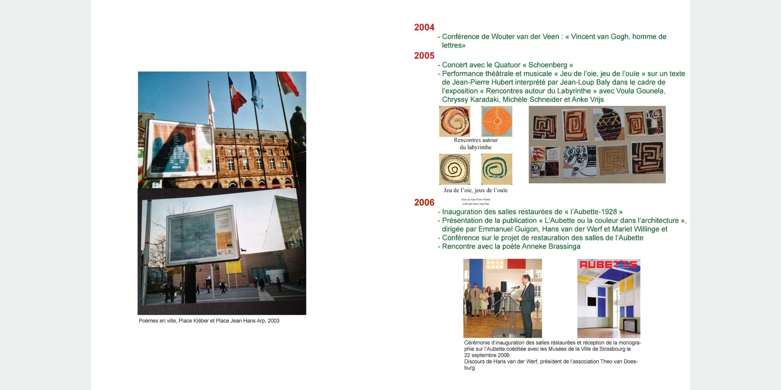 Sur une durée de vingt ans, à partir de sa fondation, le livret donne un aperçu des initiateurs, des acteurs, des promoteurs et des réalisations de l’association Theo van Doesburg présenté d’une façon dadaludique, les tout agrementé de divers images à coller selon les envies de l’acquéreur-e.