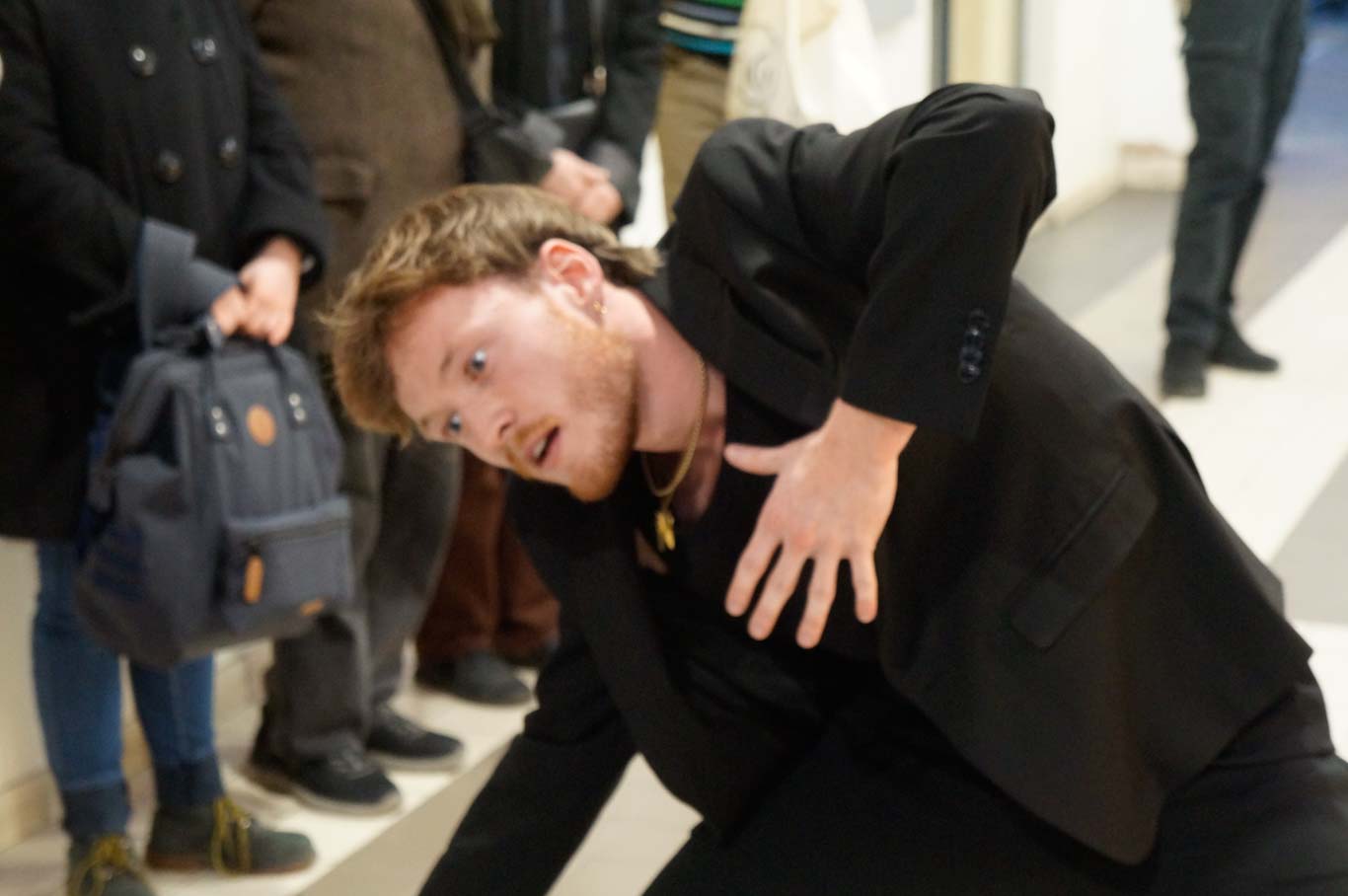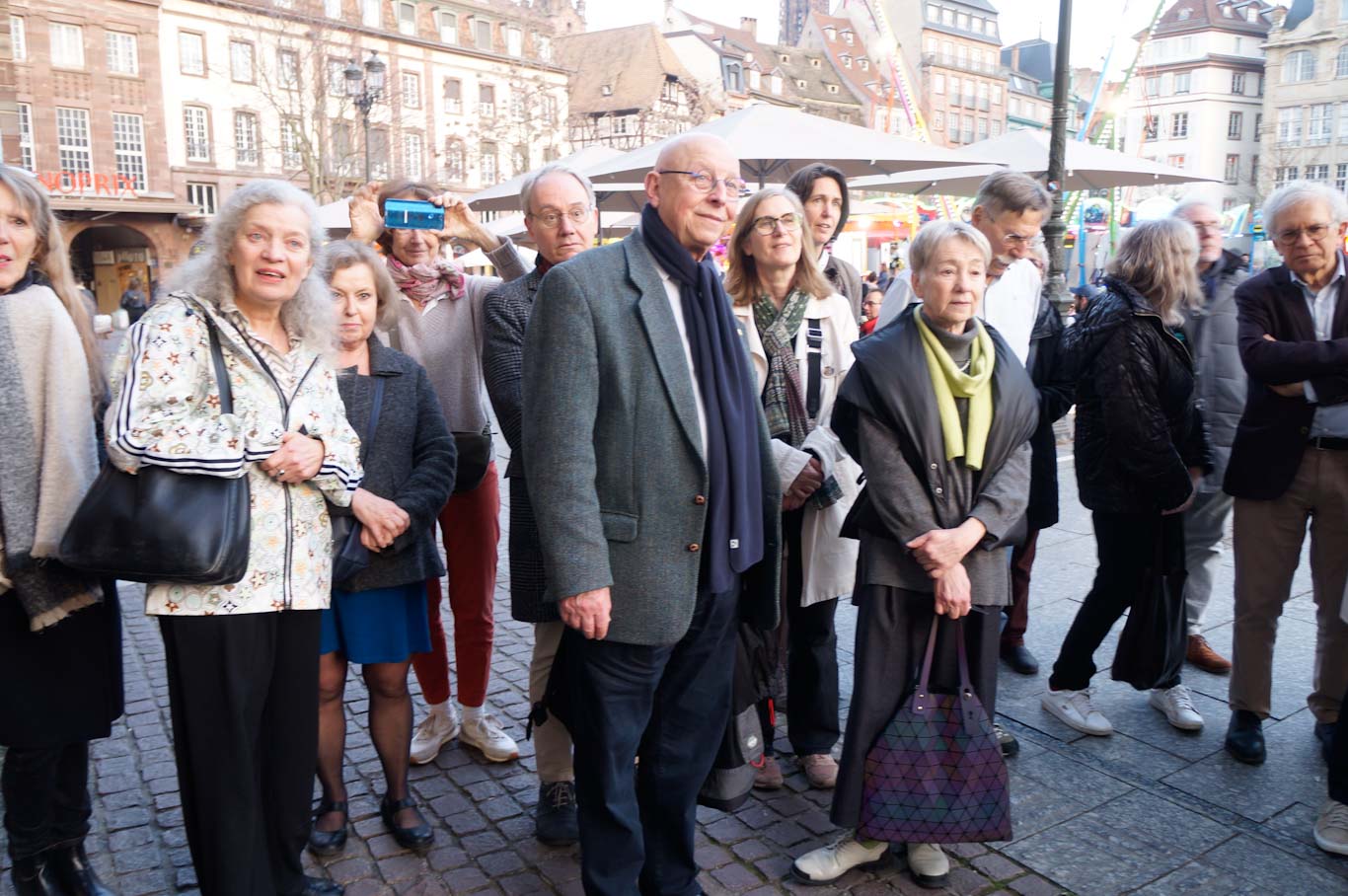 Ensuite commence une déambulation à travers les salles sur le thème du passage. Nous avons démarré notamment dans le passage liant la Place Kléber au centre de l’îlot. L’ensemble du groupe a été disposé le long des murs marquant ainsi les anciennes entrées vers la brasserie, l’Aubette-bar et le salon de thé.