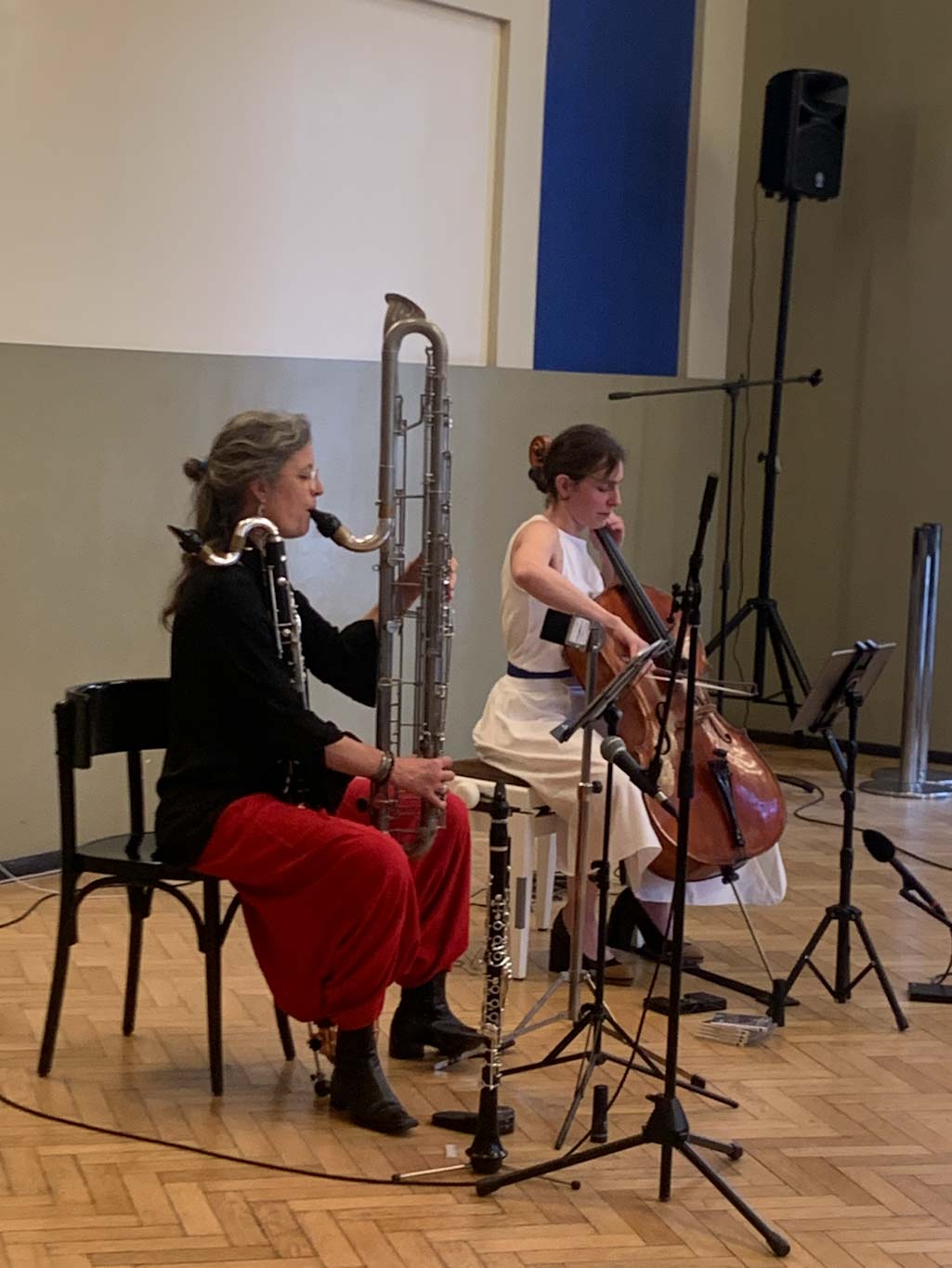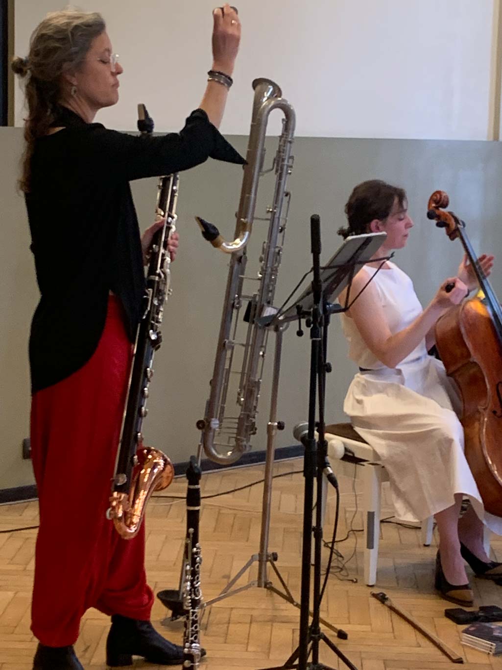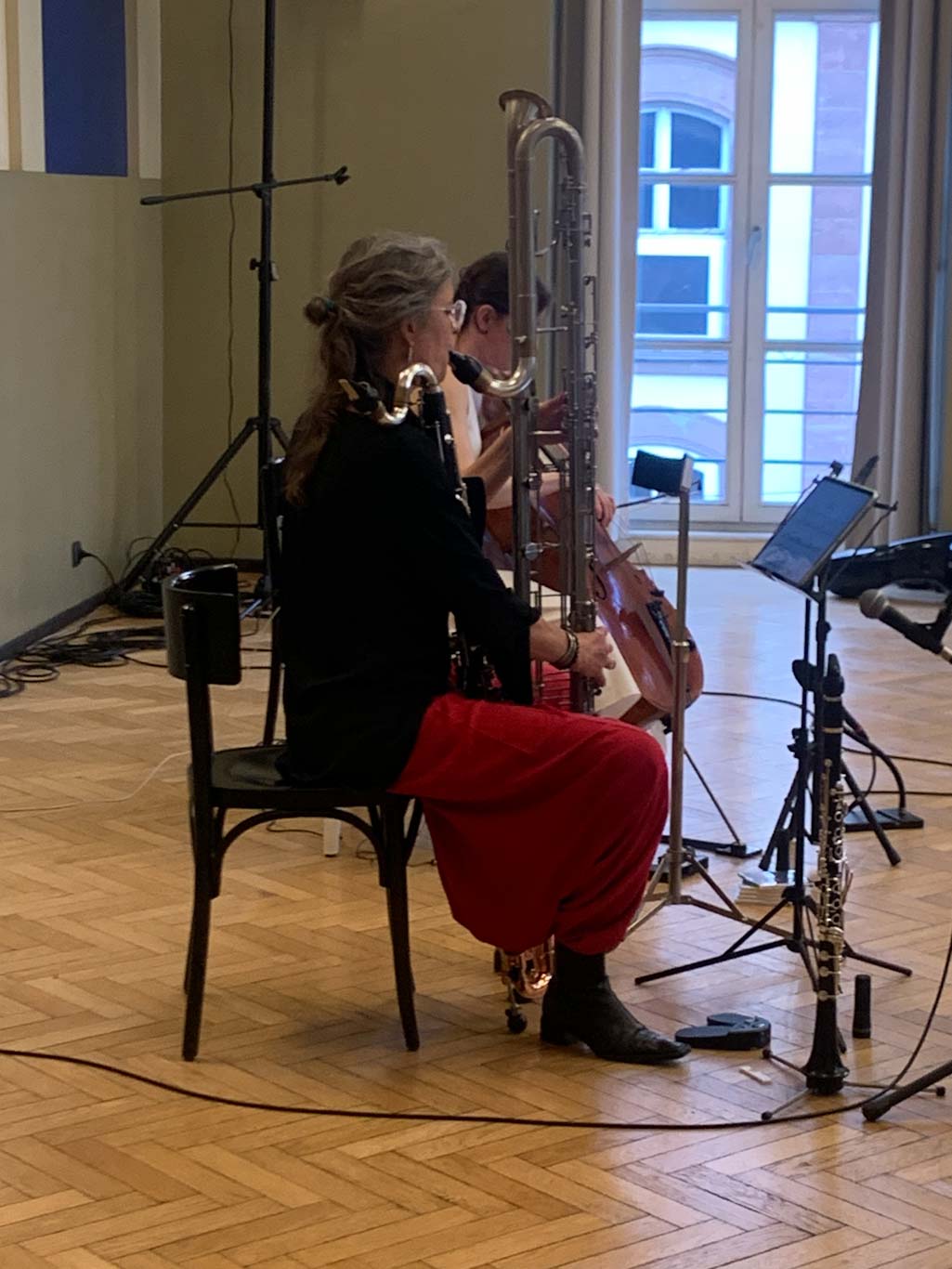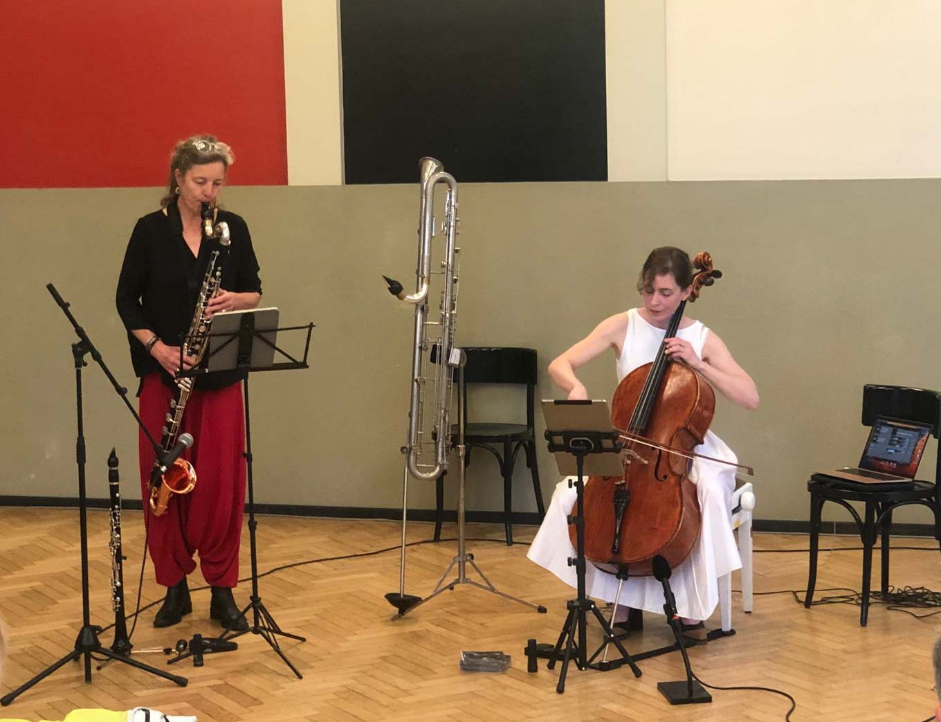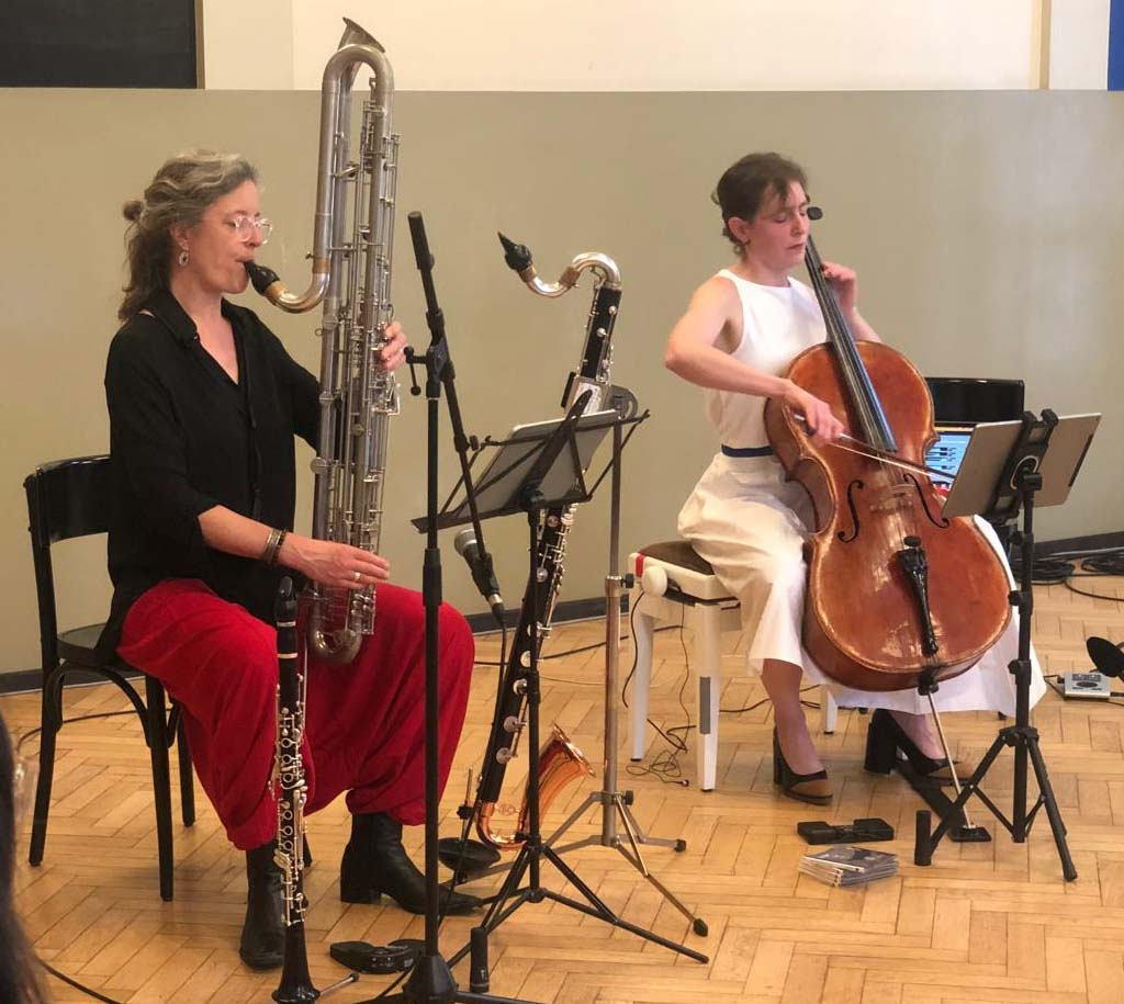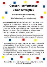 Katharina Gross (violoncelle) était en résidence à l’Aubette 1928 depuis le printemps 2024 et s’associe avec sa collègue Fie Schouten (clarinette basse) pour interpréter des œuvres écrites pour les deux instruments par Janco Verduin, Peter Jakober, Rozalie Hirs et elle-même : des sonorités subtiles et insolites !