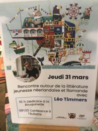 Élaine Michon, agent littéraire (élami agency), a donné une conférence sur la particularité de la littérature jeunesse aux Pays-Bas. Elle a abordé différents aspects, qu’il s’agisse de l’organisation générale de l’édition, de la distribution des livres, des différents organismes et groupement de la profession, de la promotion de la littérature jeunesse au travers des actions qui sont menées en direction de ce public ainsi que de leur périodicité, incité à lire, des prix qui sont attribués. Au-delà de l’aspect administratif ou réglementaire, elle a aussi abordé les spécificités néerlandaises, comme les albums sans texte, où le « lecteur » est invité à faire travailler son imagination, les albums d’art réunissant musées et éditeurs, l’ouverture à la poésie y compris chez les petits incités à rimer, sans oublier les lectures qui s’adressent aux adolescents pour qui aucun sujet n’est trop complexe quand tout peut être abordé sans tabou.