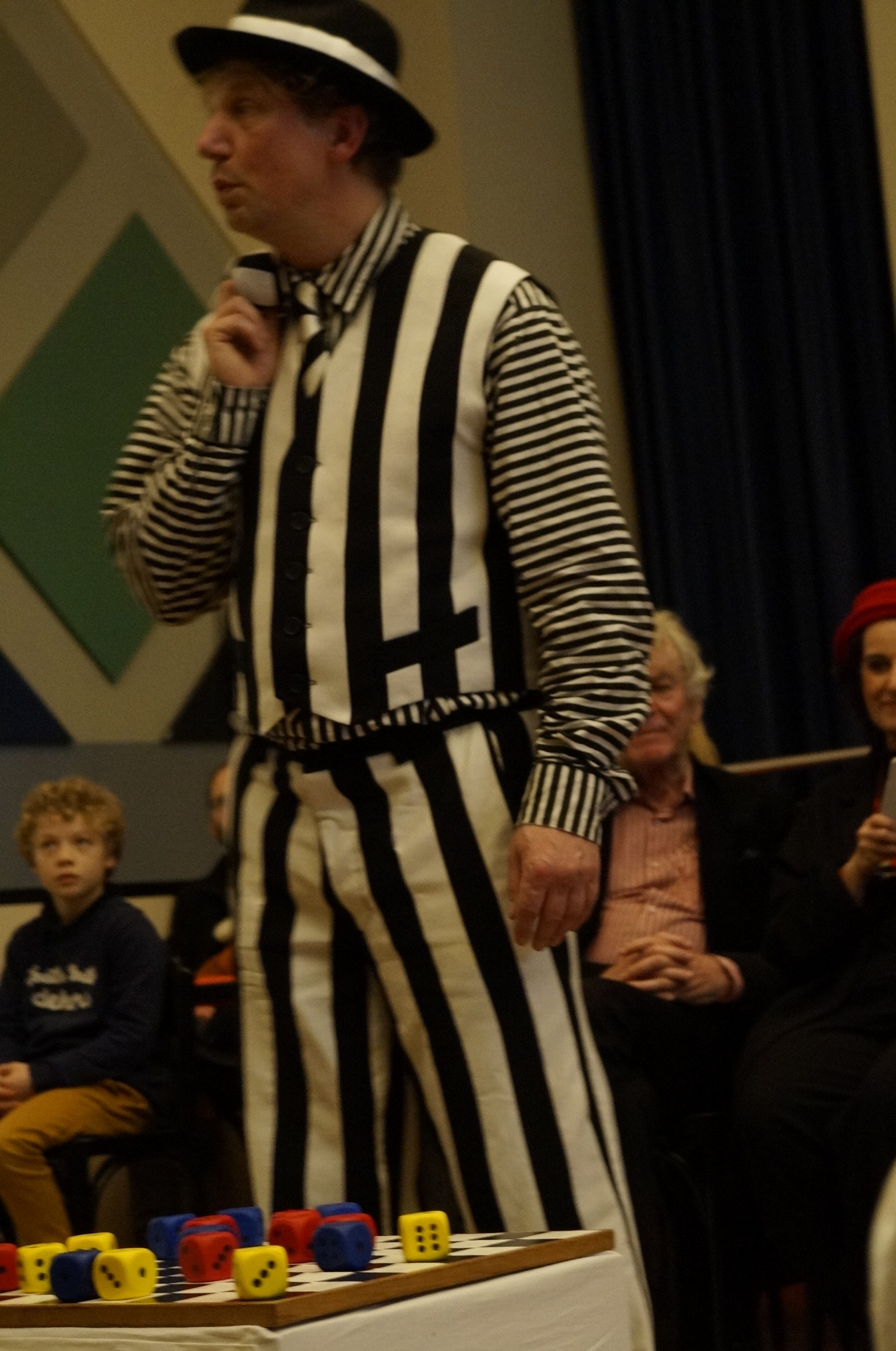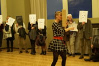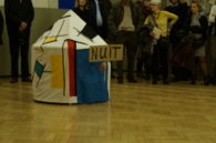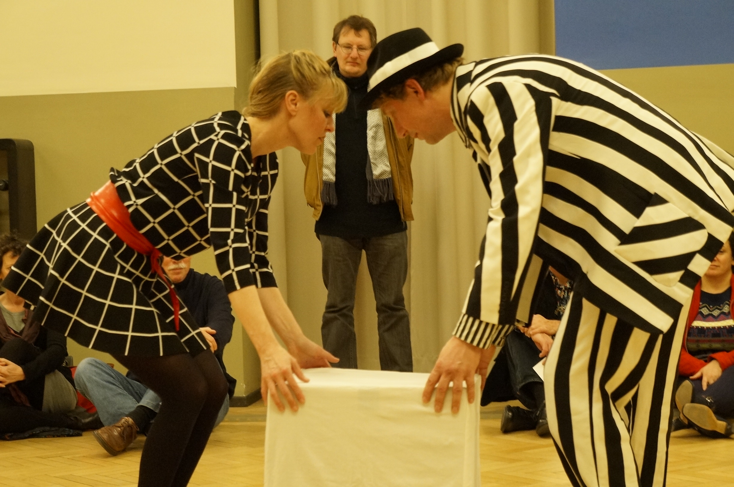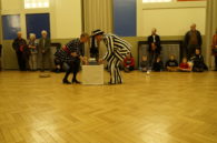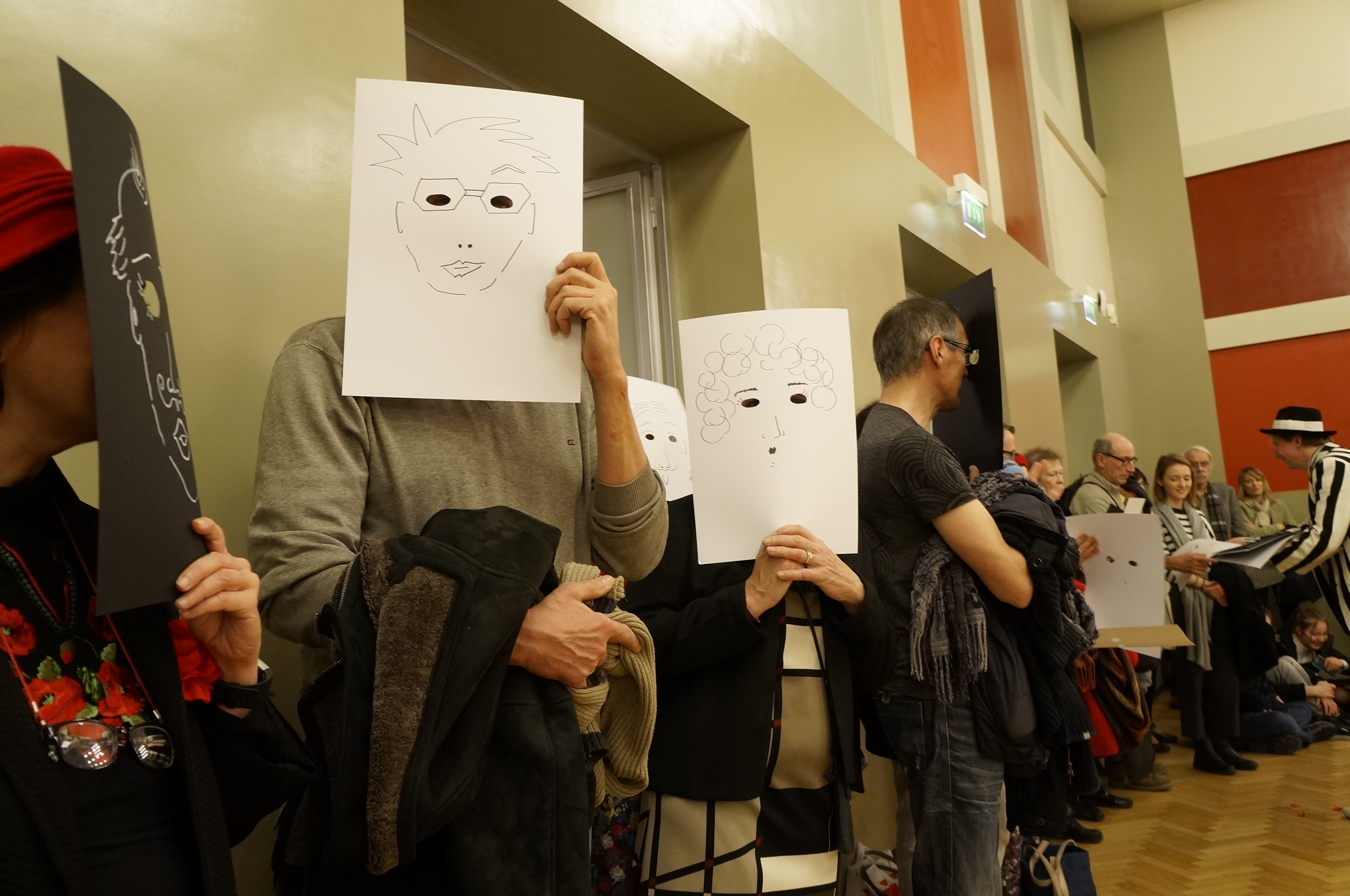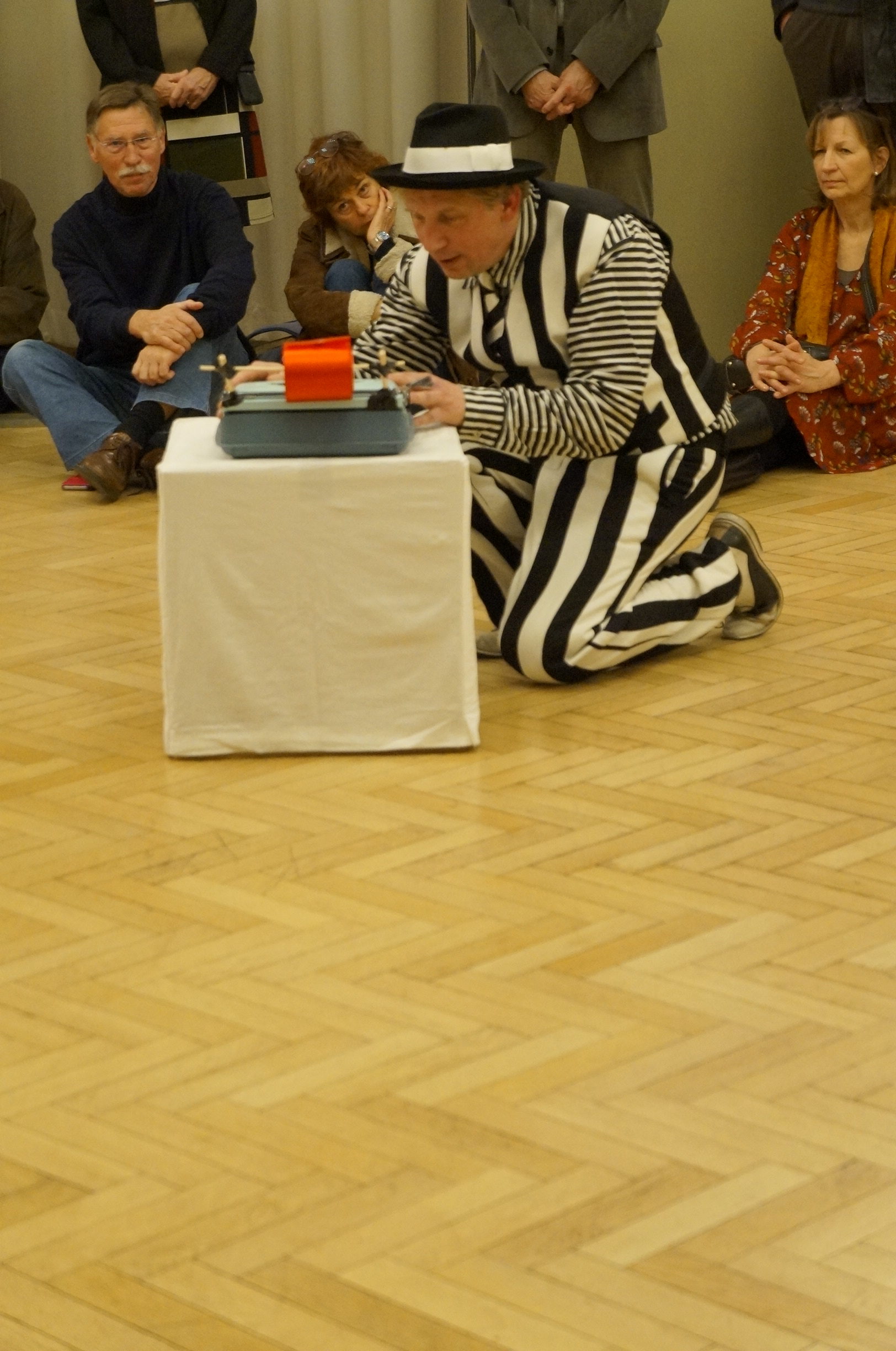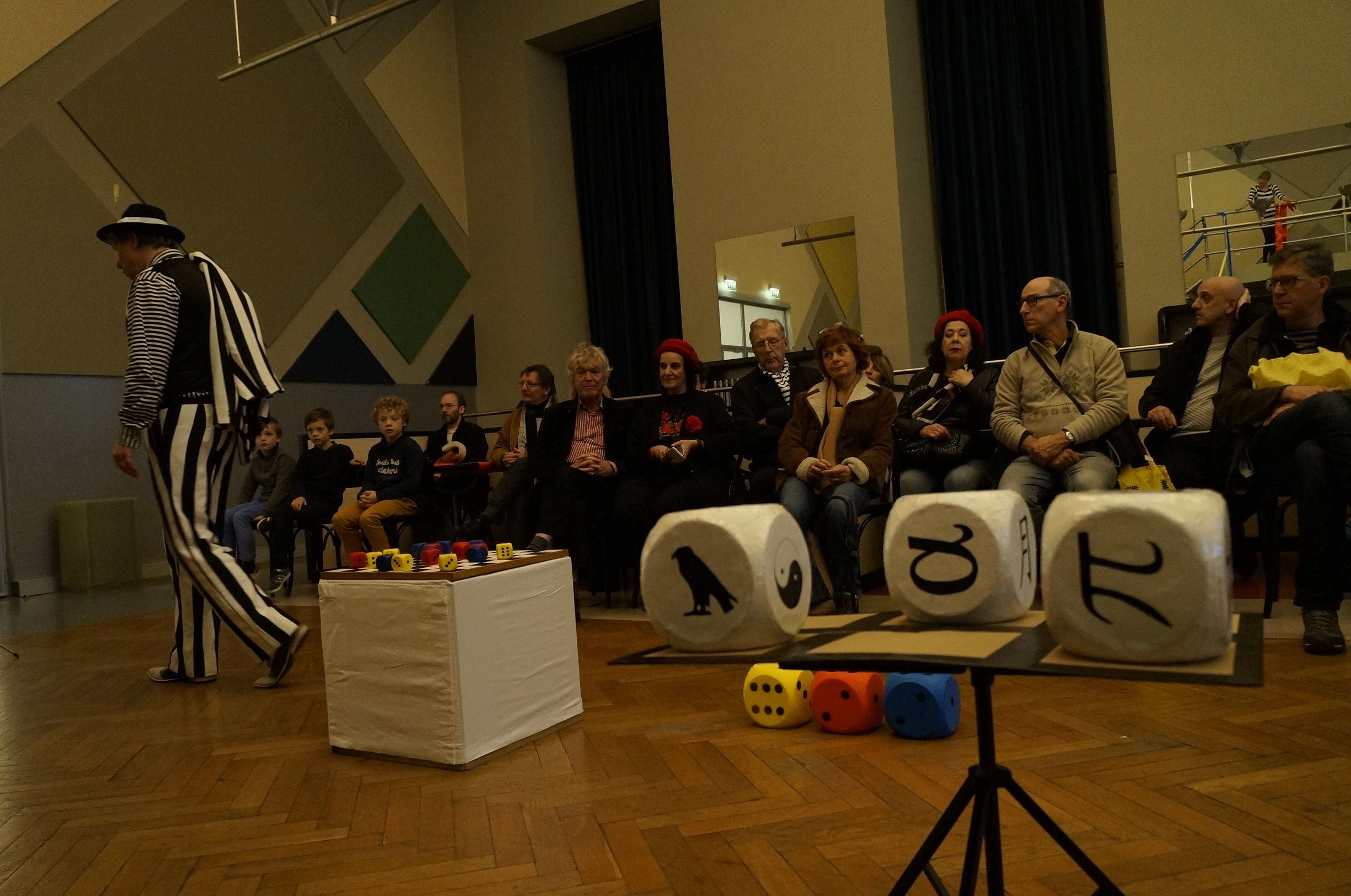 Cette « performance en forme de poire » spécialement conçue pour l’Aubette 1928 par le duo de performeurs réputés Professor Russolo et Miss QQ a été un grand succès à tout point de vue ! Le public est venu en grand nombre et est reparti comblé.